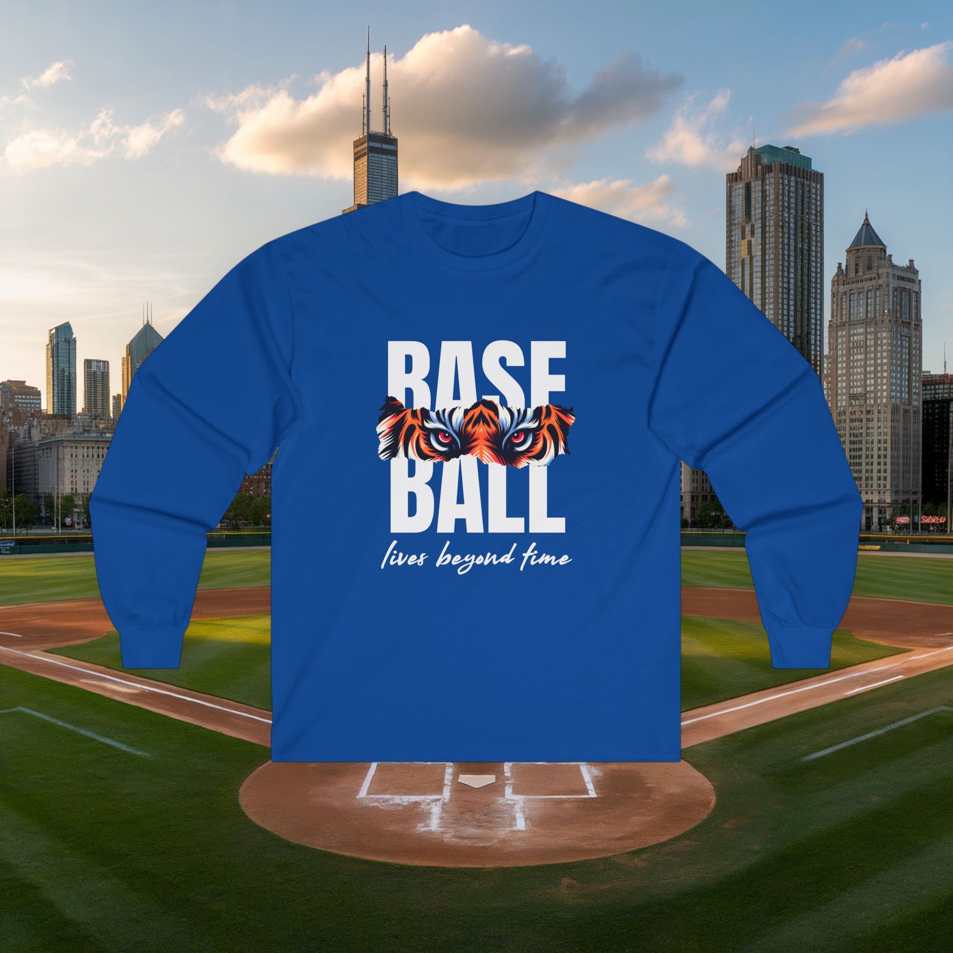 Baseball Lives Beyond Time Long Sleeve Tee gives a timeless and classic vibe, perfect for baseball fans and enthusiasts. This tee is a great addition to any casual outfit and can be worn to baseball games, sports events, or as everyday wear. Ideal for adults looking for a comfortable and stylish long-sleeve tee.